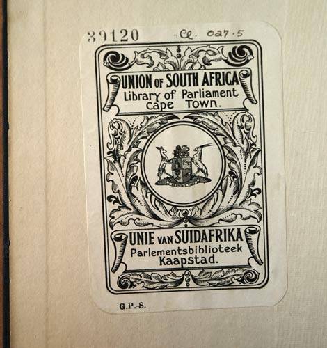 Book condition- Hardcover in good condition. Binding sound. ex-library with Union of South Africa Library of Parliament Cape Town.