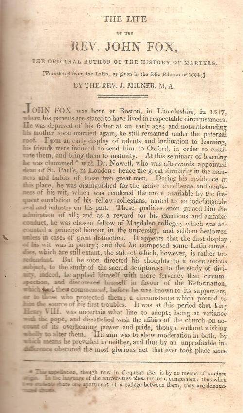 The History of Christian Martyrdom Translated from Original Folios of Rev J. Fox By: Rev. J. Milner
