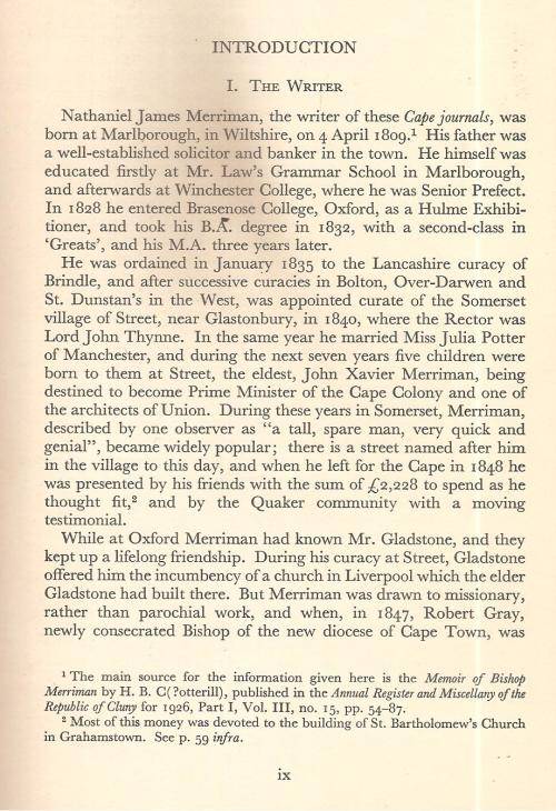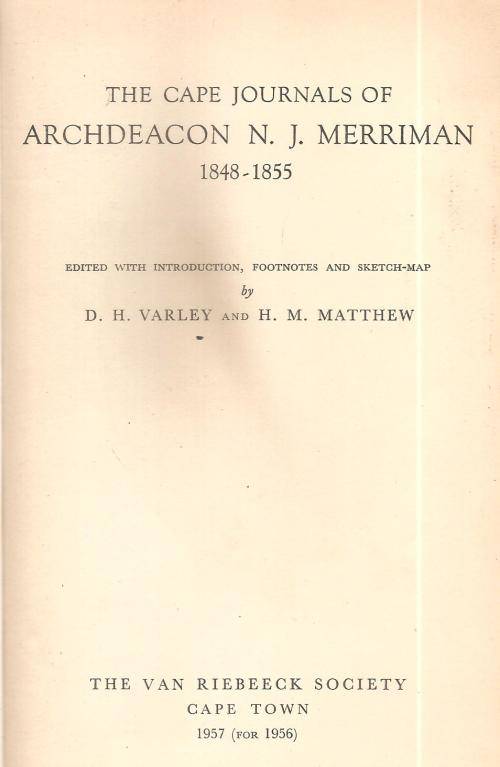 The Cape Journals of Archdeacon N. J. Merriman 1848-1855 By: D. H. Varley & H. M. Matthew