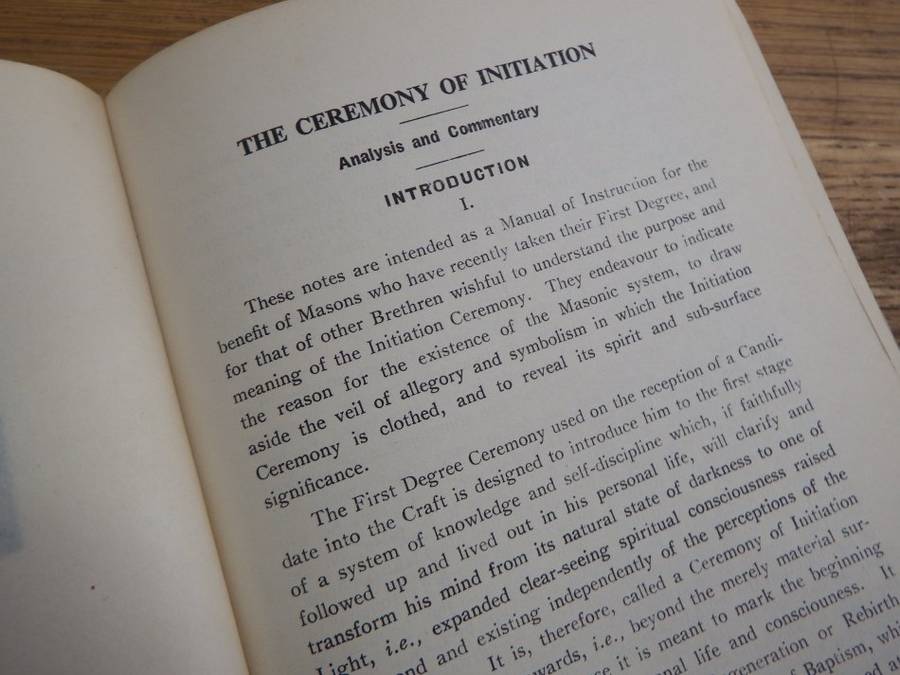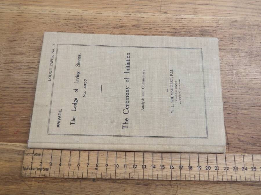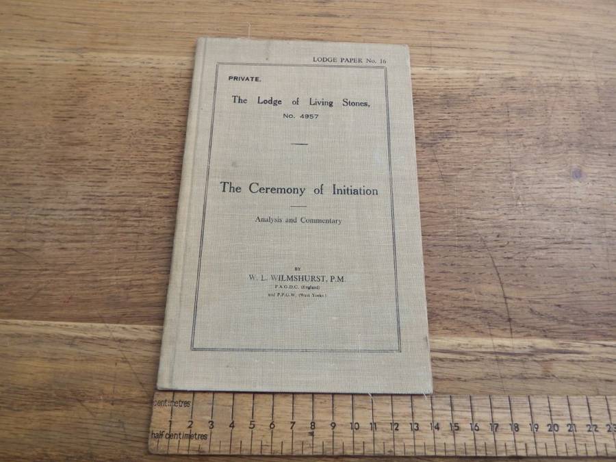 The Ceremony of Initiation by W.L. Wilmshurst - 1953 Privately printed - The Lodge of living stones