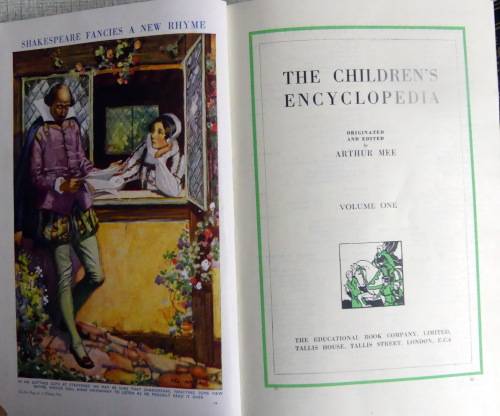 "Arthur Mee (1875-1943) was a British writer, journalist and educator. He is best known for the Children's Encyclopedia, Harmsworth Self-Educator and The Children's Newspaper. He produced other works especially on the subjects of History or the countryside. In 1908 he began work on the The Children's Encyclopedia which came out as a fortnightly magazine. The series was published and bound in 8 volumes and later expanded to 10 volumes".