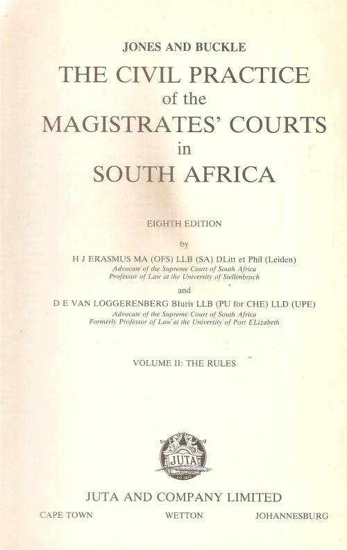 The Civil Practice of the Magistrates' Courts in South Africa 8th Ed. By: H. J. Erasmus & D. E. van Loggerenberg
