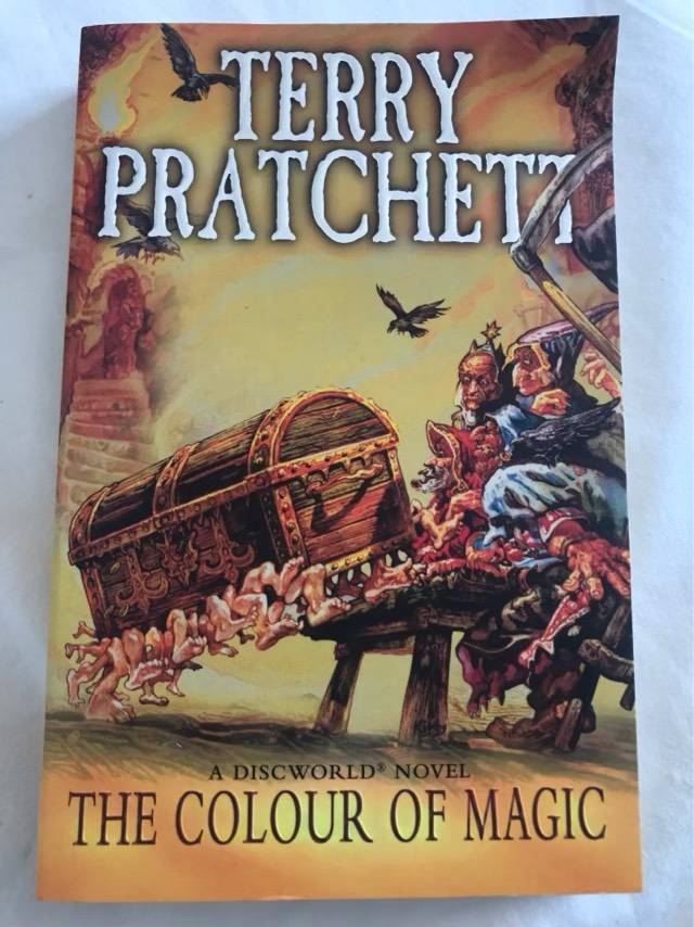 Terry Pratchett's profoundly irreverent, bestselling novels have garnered him a revered position in the halls of parody next to the likes of Mark Twain, Kurt Vonnegut, Douglas Adams, and Carl Hiaasen.The Color of Magic is Terry Pratchett's maiden voyage through the now-legendary land of Discworld. This is where it all begins -- with the tourist Twoflower and his wizard guide, Rincewind.On a world supported on the back of a giant turtle (sex unknown), a gleeful, explosive, wickedly eccentric expedition sets out. There's an avaricious but inept wizard, a naive tourist whose luggage moves on hundreds of dear little legs, dragons who only exist if you believe in them, and of course THE EDGE of the planet