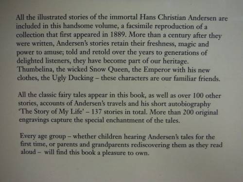 Hardcover book in good condition. There is a slight dent on the top of the pages where a paperclip was used as a bookmark. Nothing too serious. The rest of the book is neat and clean. contains 137 stories with more than 200 original illustrations. 948 pages.