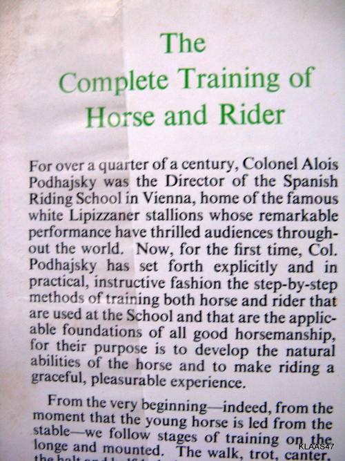 The Complete Training of Horse and Rider Alois Podhajsky hardcover 1969 reprint