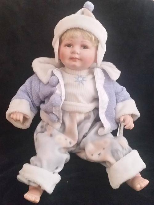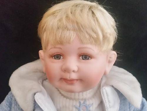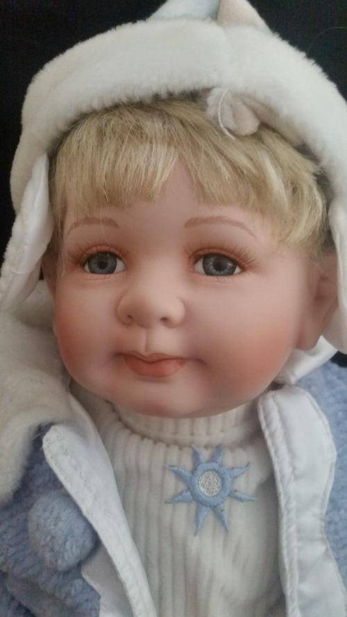 UP FOR BIDD WE HAVE THIS CUTE LITTLE BOY...MOTHER DEAR JUST LOOK AT THAT FACE AND WHO WILL NOT LOVE HIM HE IS 54CM TALL SOFT BODY AND PORCELAIN HEAD, ARMS AND LEGS