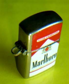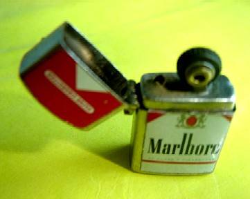 The paintwork on the front is perfect, but cannot say the same for the reverse side. The lighter gives a strong spark when flicked, so the flint is in good condition. There is no wick, but internally there is the woolen material which holds the lighter fuel.