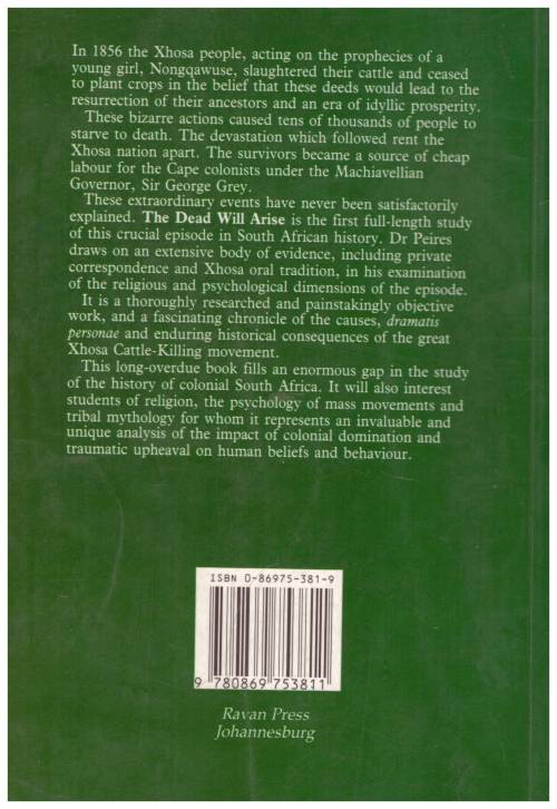 The Dead will Arise - Nongqawuse and the Great Xhosa Cattle-Killing Movement of 1856-7 by J B Peires, JP Peires 1990, 348 pages, good condition. There are a lot of notes and markings in the book
