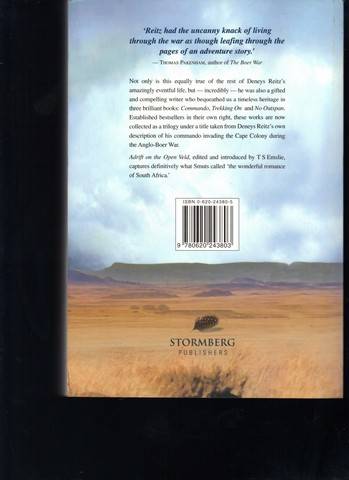 The Deneys Reitz Triology , Adrift on the open veld ,The Aglo-Boer War and its Aftermath 1899-1943 Commando.Trekking on.No Outspan , Published by Stormberg 1999, first adition ,soft wrapper ,illustrated and maps,560 pages ,good contion