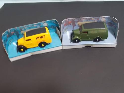 The Dinky Collection Lot #1 (12 units) Made by Matchbox on a scale of 1:43. All the models are still in their original display boxes. Most of the plastic covers have dulled over time and most boxes have been spoiled by price tags. The models are all in a very good condition but the general conditions of the boxes can be rated as about 7/10. Each box gives a brief description of the original car. The collection comprises: DY-1 1968 Jaguar E-type MK 1½ Green (no mounting screws) DY-1B 1967 Jaguar E-type MK 1½ Red DY-2 Chevrolet Bel Air 1957 DY-3 M.G.B. GT 1965 DY-4 1950 Ford E83W 10 CWT van (Radio Times) (back door chipped) DY-4 1950 Ford E83W 10 CWT van (Heinz) DY-5 1950 Ford V8 Pilot (black) DY-5B 1950 Ford V8 Pilot (beige) DY-5C 1950 Ford V8 Pilot (silver) DY-6 1951 Volkswagen Beetle (black) DY-6B 1951 Volkswagen Beetle (red) DY-6C 1951 Volkswagen Beetle (blue) Postage and packaging: R30.00 + 3% insurance (if required). Combined items to be advised as per post office rates. Please note: bobPay only. Shipment of goods may take up to one week after payment.