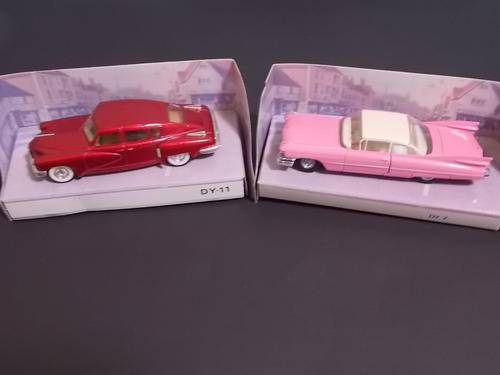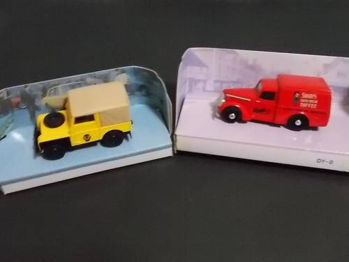 The Dinky Collection Lot #2 (11 units) Made by Matchbox on a scale of 1:43. All the models are still in their original display boxes. Most of the plastic covers have dulled over time and most boxes have been spoiled by price tags. The models are all in a very good condition but the general conditions of the boxes can be rated as about 7/10. Each box gives a brief description of the original car. The collection comprises: DY-7 1959 Cadilac Coupé De Ville (red) DY-7B 1959 Cadilac Coupé De Ville (pink) DY-8 1948 Commer 8 CWT Van (blue) (His Masters Voice) DY-8B 1984 Commer 8 CWT Van (red) (Sharp’s Super KreemToffee) DY-9 1948 Land Rover (yellow) DY-9B 1949 Land Rover (green) DY-11 1948 Tucker Torpedo (red) DY-11B 1948 Tucker Torpedo (blue) DY-12 1955 Mercedes Benz 300 SL Gullwing (black) DY-12B 1955 Mercedes Benz 300 SL Gullwing (beige) DY-13 1955 Bentley R Continetal Postage and packaging: R30.00 + 3% insurance (if required). Combined items to be advised as per post office rates. Please note: bobPay only. Shipment may take up to 1 week after payment received.