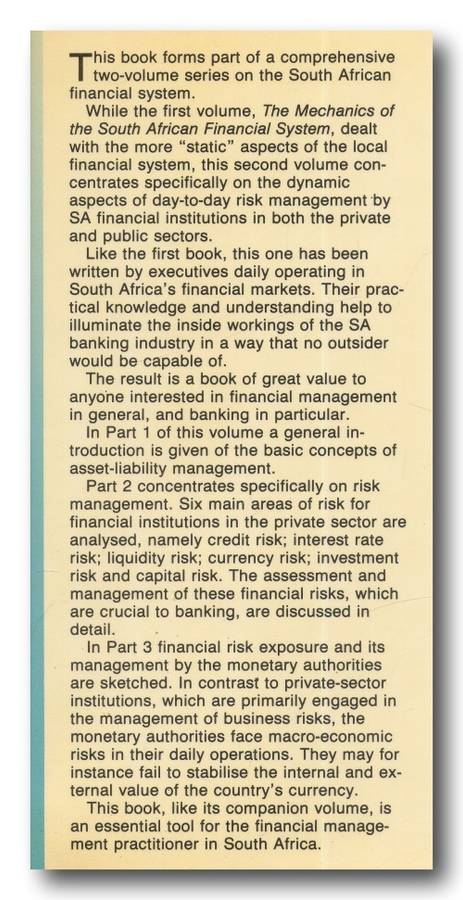 The Dynamics of the South African Financial System edited by Falkena/Kok/Meijer (1st ed & impression 1987). A5, Hard cover with dust cover, 245 pages. Dust Cover slightly worn. Book inside in good readable condition.