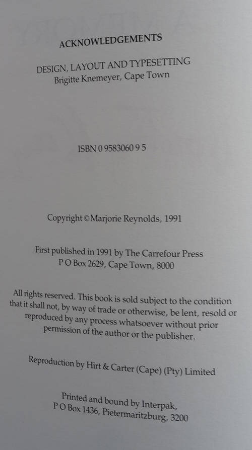 197pp. B&W and colour photos. Quote: ."is edited and prepared for publication by her daughter, Marjorie Reynolds, follows the publication in 1989 of the biography of Dorothy Kay.Together they provde a full and fascinating picture of one of South Africa's (and Ireland's) finest painters, as well as affording us a unique insight into the historical places and periods of her life".