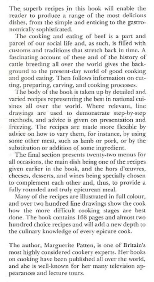 The Epicure`s Book of Steak and Beef Dishes by Marguerite Patten