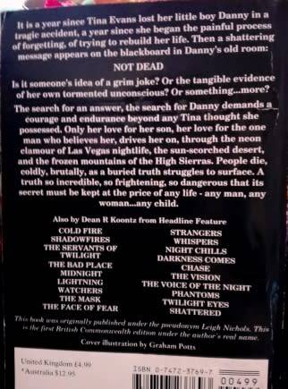 Only there is a message for Tina, scrawled on the chalkboard in Danny’s room: NOT DEAD. Two words that send her on a terrifying journey from the bright lights of Las Vegas to the cold shadows of the High Sierras, where she uncovers a terrible secret…
