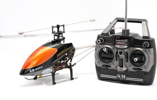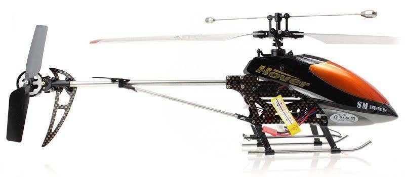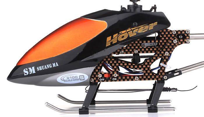This is the first 3 Channel helicopter with single blade (not coaxial). Normal 3 Channel Helicopters needs a Coaxial Structure to maintain the stability, but this Double Horse 9100 does not need it! It can hover well by just single blade! With extremely cool Carbon Fiber Pattern Simulation metal frame and well painted canopy, who would say it is a toy? This Gyro Heli includes a 7.4V rechargeable Li-Po battery for longer flight time! Get one today before they all fly away!