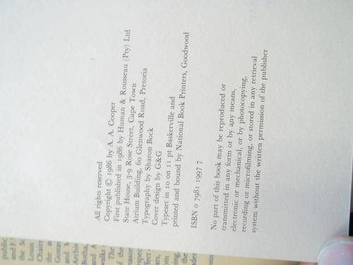 Human & Rosseau (Pty) Ltd 1986 First Edition.