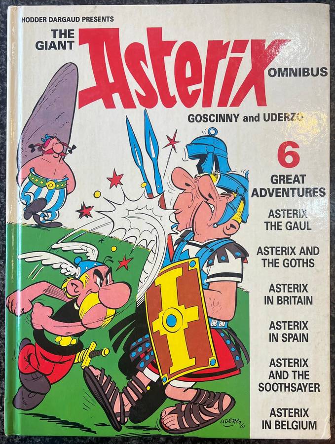 THE GIANT ASTERIX OMNIBUS: 6 GREAT ADVENTURES BY GOSCINNY AND UDERZO. HARDCOVER, 1969, NO INSCRIPTIONS OR NAMES, IN EXCELLENT CONDITION.
