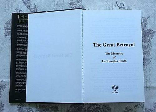 The Great Betrayal, The Memoirs of Africa's Most Controversial Leader by Ian Smith, 1st edition, Hardcover with dust jacket published 1997.