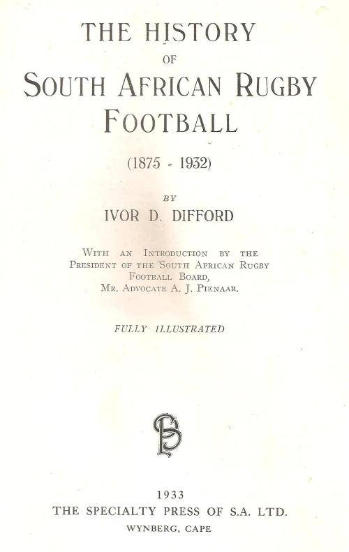 The History of South African Rugby Football 1875 - 1932 By: Ivor D. Difford
