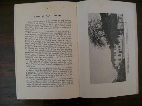 Card Cover book. Published by R.B.H.S. War Memorial Fund Committee Cape Town 1947.