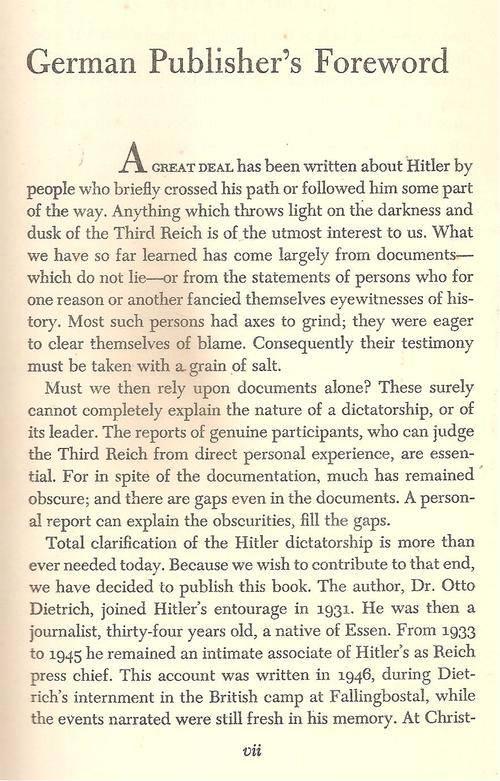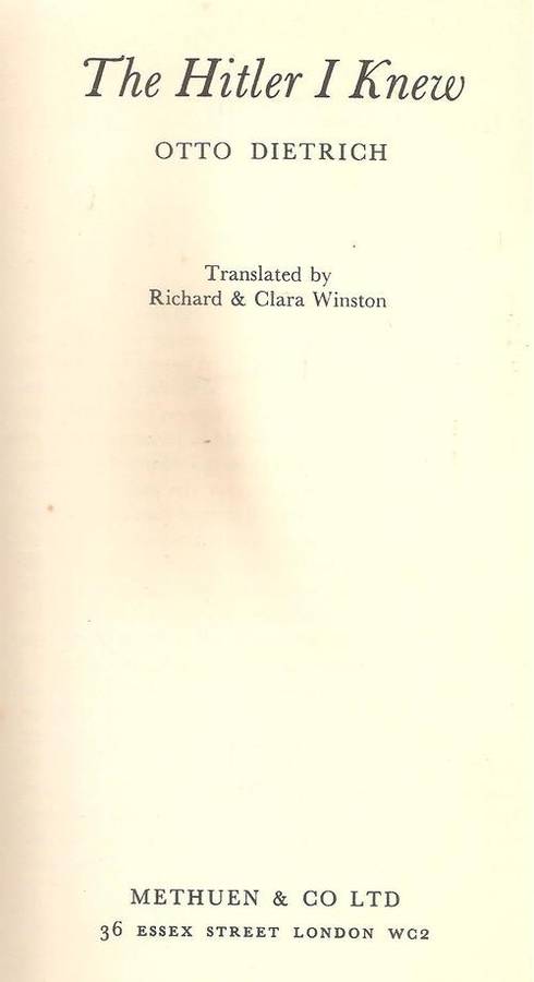 The Hitler I Knew By: Otto Dietrich Translated from the German