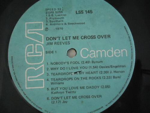 On offer is this THE HITS OF JIM REEVES "DON'T LET ME CROSS OVER" 1970 RCA CAMDEN STEREO LP+PLASTIC COVER IN EXCELLENT CONDITION