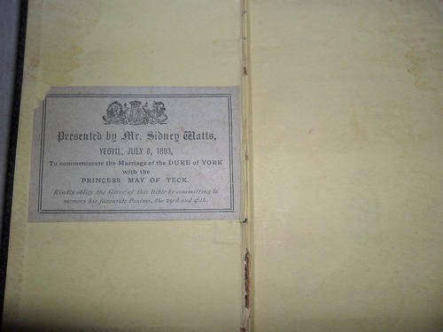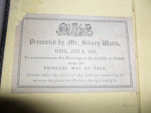 SOME KEY WORDS - CHRISTIAN , BYBEL , BIJBEL , OLD BIBLES , PRINCESS MAY OF TECK , DUKE OF YORK , YEOVIL , SIDNEY WATTS
