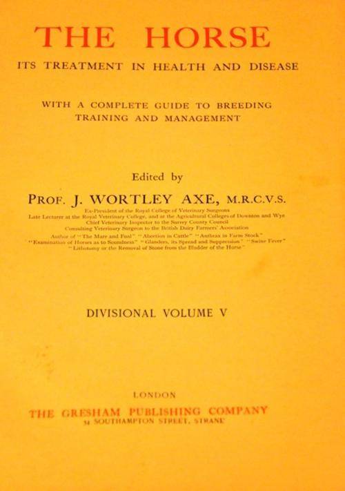 This is the complete nine volume set of ‘The Horse’. Each book is profusely illustrated with colour and black-and-white drawings and photographs. The object of the editor in preparing this work has been to set out in one compact whole some of the most useful information relating to the horse. The origin and development of the horse, his varieties, his breeding, training, and management, in health and disease, with other cognate subjects, have each in turn been considered.