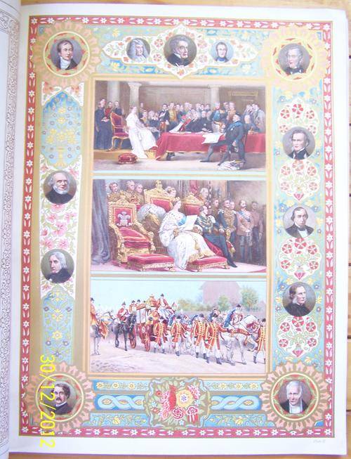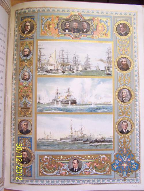 Large 63 page book. Cover pages worn all around the edges. This book contains advertisement pages with a lot of foxing. Book also has a lot of card-type pages with beautiful coloured images that can be taken out and framed. The card-type pages are also foxed, but the foxing is only visible on the white borders, which would not be visible once framed.