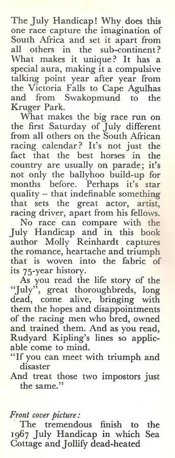 The July Handicap By: Molly Reinhardt *** Signed Copy***