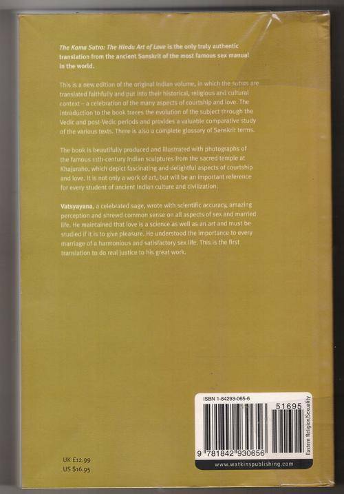 This is the only truly authentic translation of Vatsyayana's Kama Sutra from the ancient Sanskrit. This new edition is beautifully produced and illustrated with photos of the famous Indian sculptures from Sacred Temple at Khajuraho, as well as colorful paintings which depict the delightful aspects of courtship and love. Illustrations.