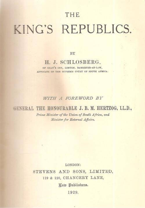 The King's Republics By: H. J. Schlosberg