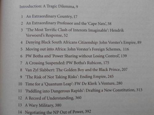Who knew that Verwoerd based his thinking on erroneous population data, that PW Botha had a first stroke which was never revealed to the public but greatly compromised his judgement, or that the Rubicon debacle depended on a misunderstanding? Giliomee offers a fresh and stimulating political history which attempts not to condemn but to understand why and how these last Afrikaner leaders did what they did, and why their own policies ultimately failed them.