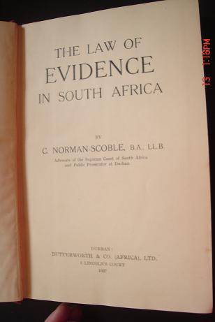 THE LAW OF EVIDENCE IN SOUTH AFRICA BY NORMAN SCOBLE