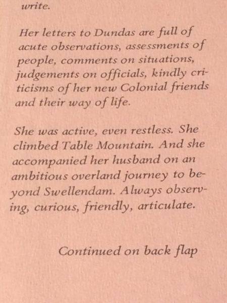 Furthermore, she was well-educated, cultured, accomplished, with an observant eye, and a developed sense of the ridiculous. And she could write. Her letters to Dundas are full of acute observations, assessments of people, comments on situations, judgements on officials, kindly criticisms of her new Colonial friends and their way of life.