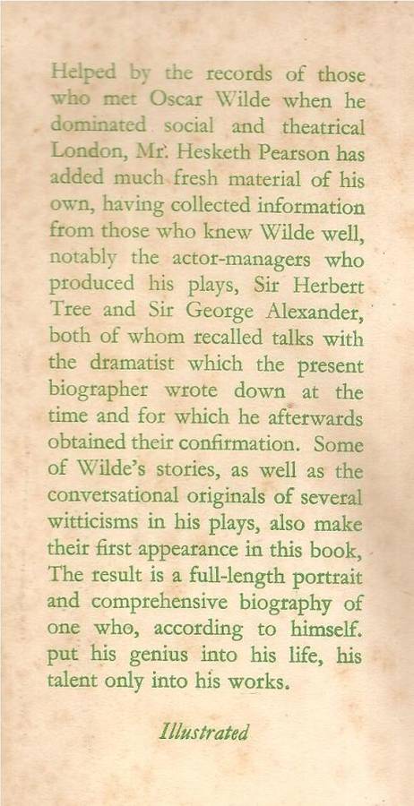 The Life of Oscar Wilde By: Hesketh Pearson ***First Edition****