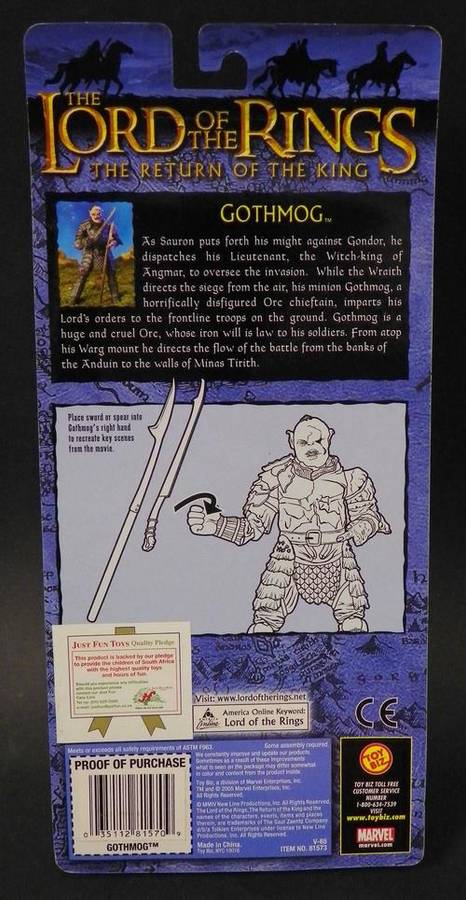 The Lord of The Rings. The Return of the King. Super Poseable 30 Points of Articulacion Gothmog Figurine in Original Box