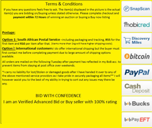 Free shipping is available from nicholasmiller56 for all orders above R2,000.00, using one of our trusted couriers. Check my rate