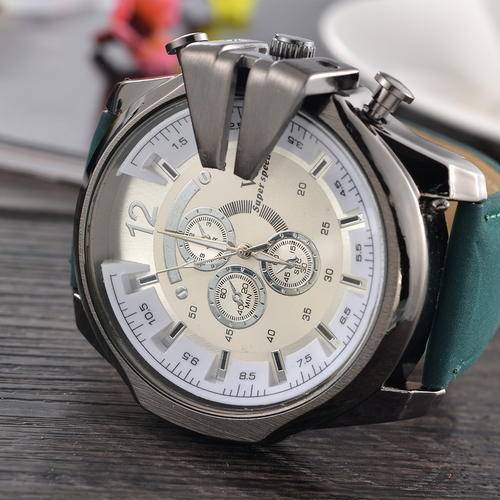 THE MAN'S MILITARY WHITE DIAL BLUE PU LEATHER BAND V6 ARMY STYLED WRISTWATCH