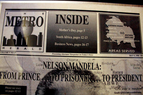 The Front Page of an American Newspaper, The Metro Herald dated 6 May 1994 about Nelson Mandela.