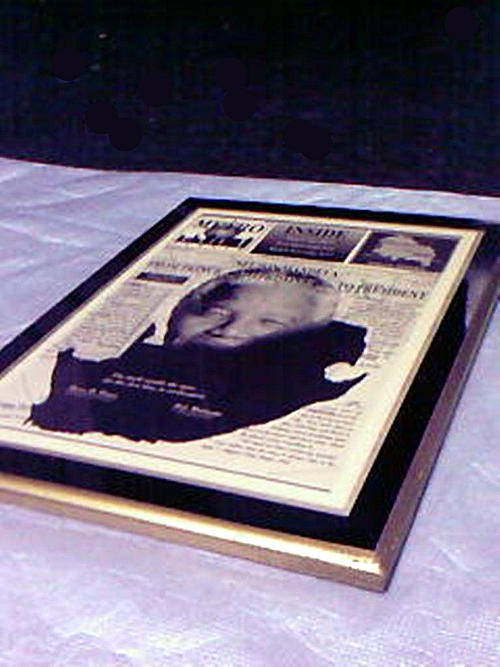 1 x 480mm x 350mm UV film lamination mounted on board of The Metro Herald Newspaper Front Page