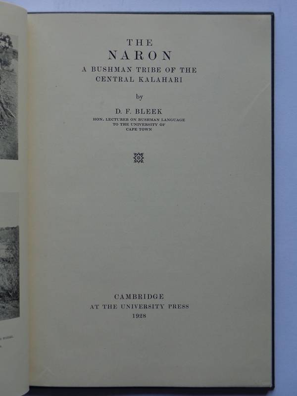 The Naron, A Bushman Tribe of the Central Kalahari - D.F. Bleek, 1928