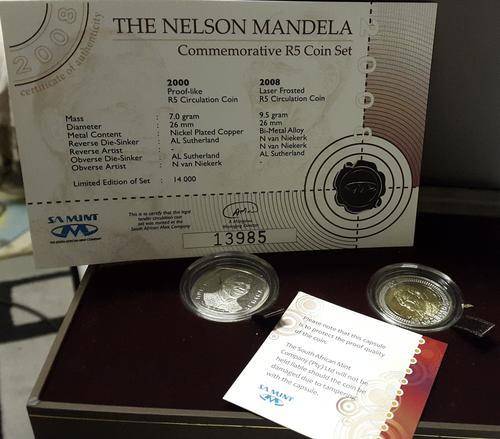 The Nelson Mandela Commemorative R5 coin set !!!! LOW START R1 - SA MUNT WITH CERT LIMITED EDITION
