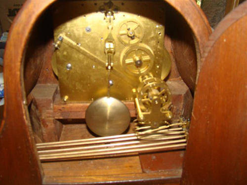 RARE The oak wood case is beautifully crafted with a lovely patina and the grain of the wood shows through very well The CLOCK WORKS…passed the 24 hour test to within 2 minutes. NOTE: With all antique clock purchases, I recommend taking the clock to a clock expert to give the clock/movement a good once over and cleaning…unless of course that you the Buyer are the clock expert…I am not The clock features chimes on a coiled gong rod and chimes every half hour every quarter AND strikes number of hours every hour. It comes with winding movement pendulum and key.. The chime has a very rich and pleasant resonating tone. The movement is operated by its pendulum Comes complete with pendulum and key. SHIPPING WILL BE R60