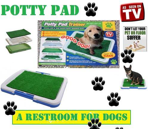 The Potty Pad is a 3 tiered doggie restroom perfect for patios and indoor use. The Potty Pad is the perfect solution for boats, recreational vehicles, apartments, high-rise buildings and cold weather climates. Elderly and handicapped pet owners, anyone who may be unable to take their dogs outdoors several times a day, will love Potty Pad!