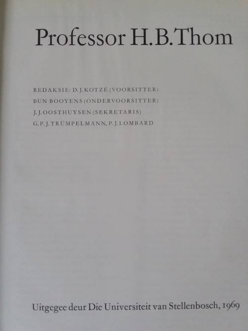Professor H B Thom - Die Universiteit van Stellenbosch - Hardeband 1969 Professor H B Thom - Die Universiteit van Stellenbosch - Hardeband 1969