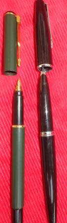 Two fountain pens (need ink and refill) and two brushed silvered ballpen and pencil set (both working).The fountain pens are boxed. Three of the items have company logos.