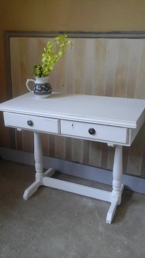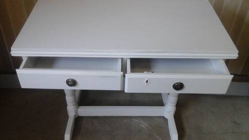 THE PERFECT 2 DRAWER WOODEN WHITE DESK OR DRESSER NICE AND COMPACT WILL BLEND WITH ANY COLOUR SCHEME