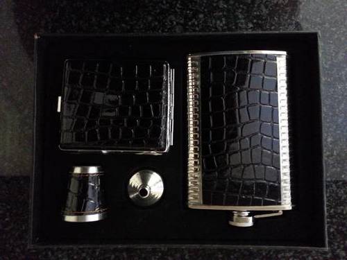 1 x 266ml Hip flask in black faux leather and stainless steel